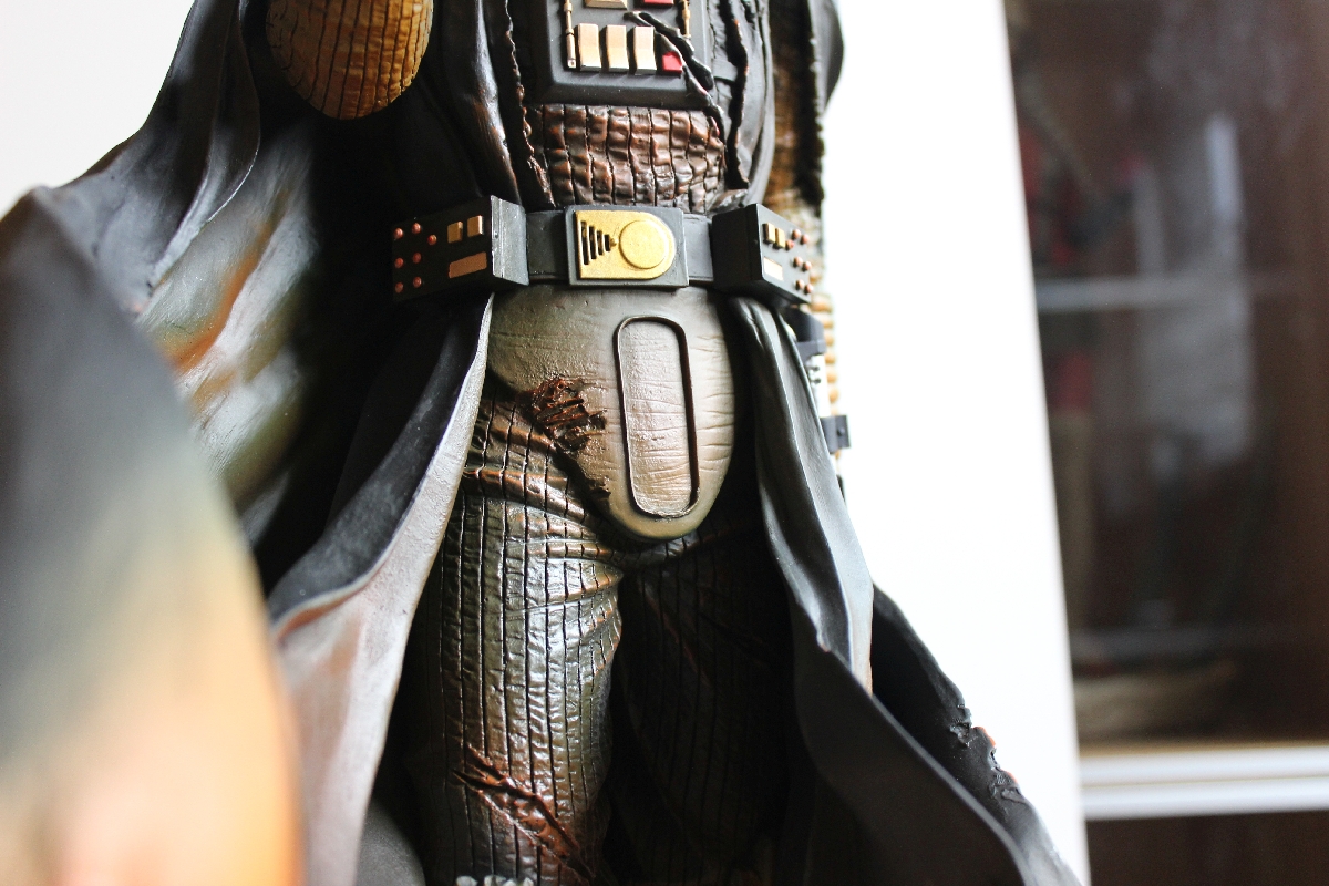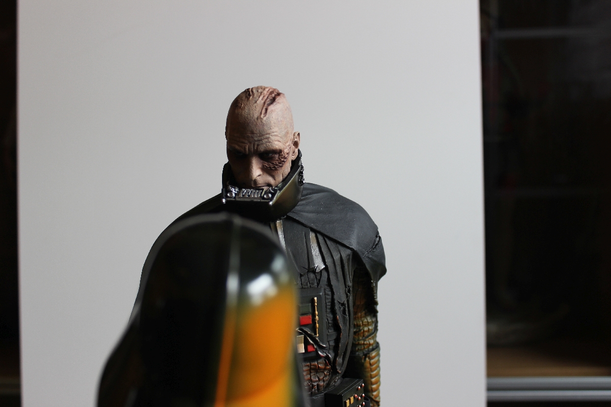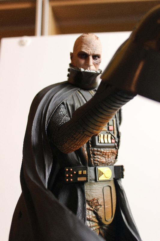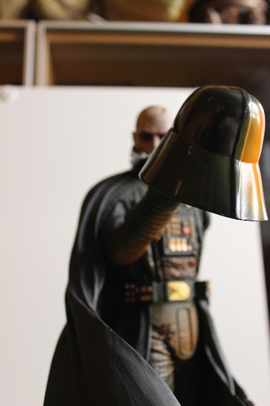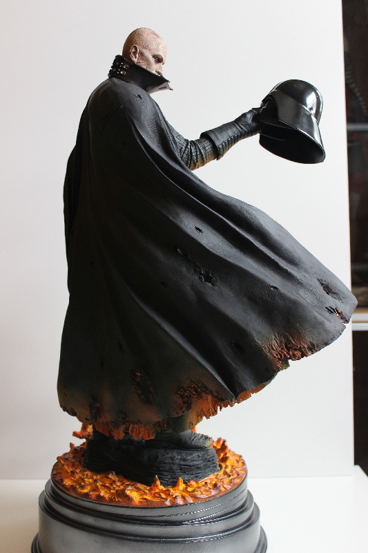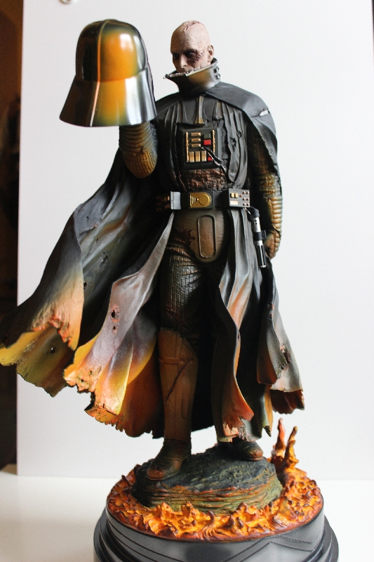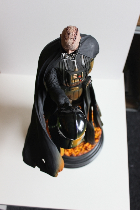 Der Gesamteindruck Bewertung: 10 von 10 Punkten Dank dem Maßstab von 1/5 ist diese Statue sehr beeindruckend, auch der Lava-Effekt ist im Endeffekt ein echter Gewinn für den Gesamteindruck. Dazu hat man noch diverse Präsentationsmöglichkeiten (mit Helm, 2 Varianten ohne Helm, mit Lichtschwert oder mit geballter Faust). Da ich schon so viele Vader mit Helm in der Sammlung hab, kam eigentlich nur diese Variante in Frage