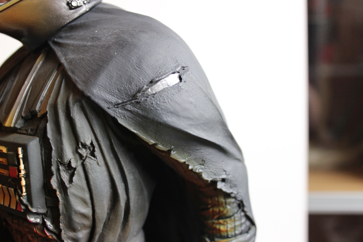 Detailaufnahmen Bewertung: 9 von 10 Punkten Die Details sind einfach überragend, man entdeckt dauernd was Neues. Die vielen Beschädigungen an der Rüstung sind super gemacht. Es gibt nur eine Sache, die mich stört und die sorgt für den einen Punkt Abzug: Die Augen schauen an dem Helm vorbei - in der Pose hätte ich mir gewünscht, dass man darauf geachtet hätte, dass das passt