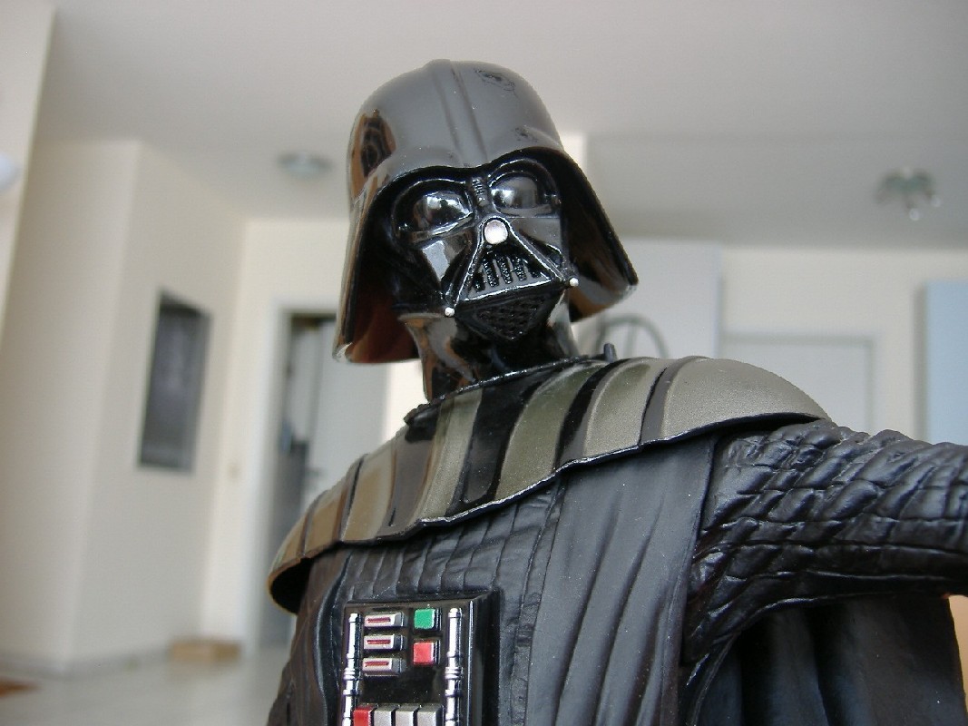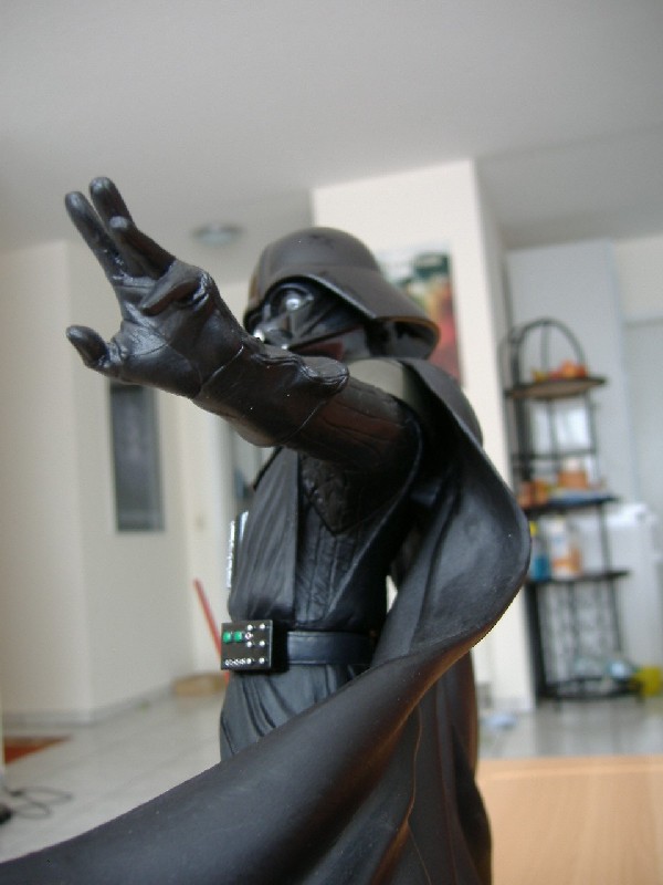 Da die erste Vader-Statue von Kotobukiya durch seinen weit ausgebreiteten Umhang meine Präsentationsplanungen umgeworfen hat, dachte ich, dass der neuere Vader besser passen würde. Zumindest sah der Mantel auf den Fotos nicht soooo breit aus! Dumm nur, dass dieser Vader den Maßstab 1/6 hat, der ältere Vader ist in 1/7...also waren beide im Endeffekt gleichbreit