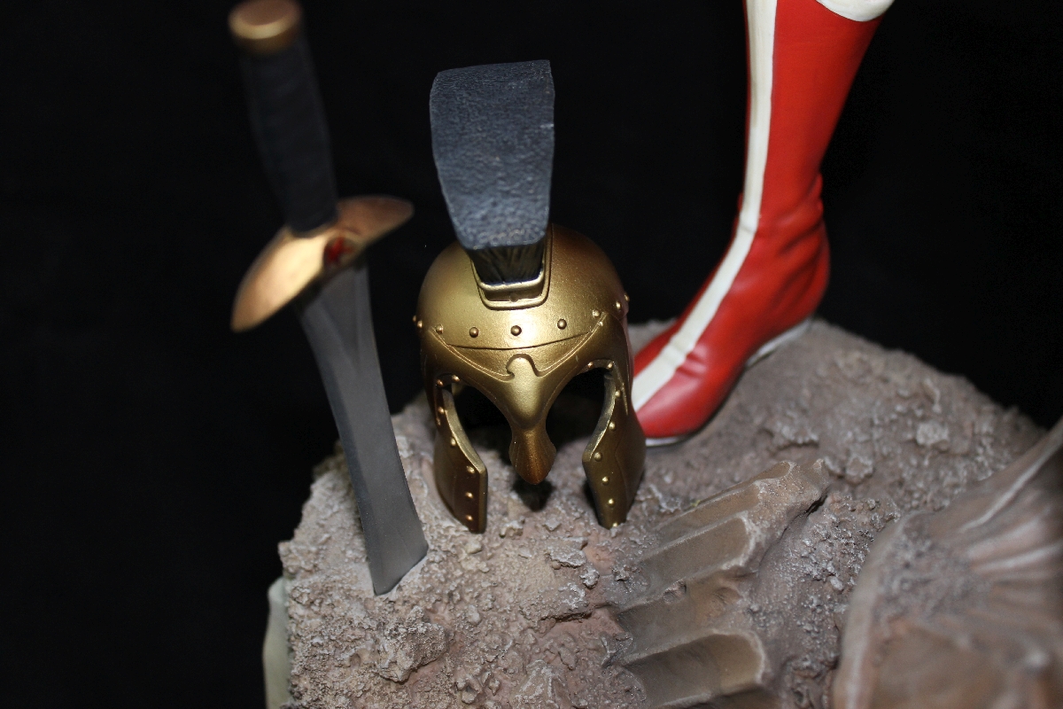 Die Base Bewertung: 10 von 10 Punkten Eine wunderschöne Base, die einer antiken Säule sehr gut nachempfunden ist. Dazu dann noch die Details wie der Helm und das Schwert und die Bemalung ist top! Volle Punktzahl!