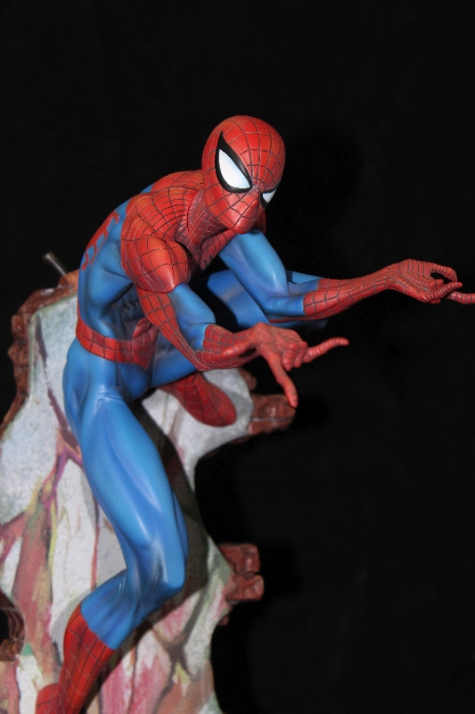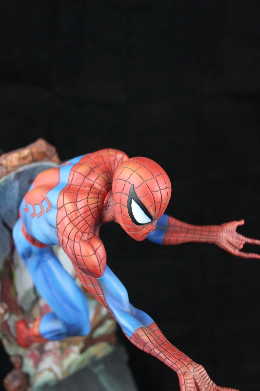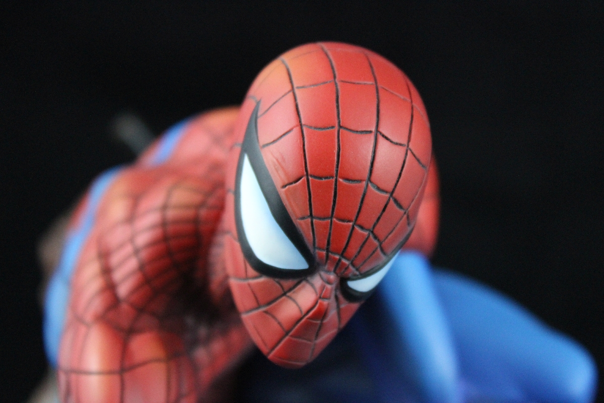 Die neuen Spiderman-Statuen, die auf den Designs von Scott Campbell basieren, gefallen mir fast alle sehr gut und da ich den Spiderman günstig bekommen konnte, habe ich zugeschlagen. Wie von Sideshow leider mittlerweile gewohnt sind die Linien des Kostüms nicht sehr sauber bemalt, aber dies fällt eigentlich nur bei Nahaufnahmen so richtig auf, von der konnte ich damit leben