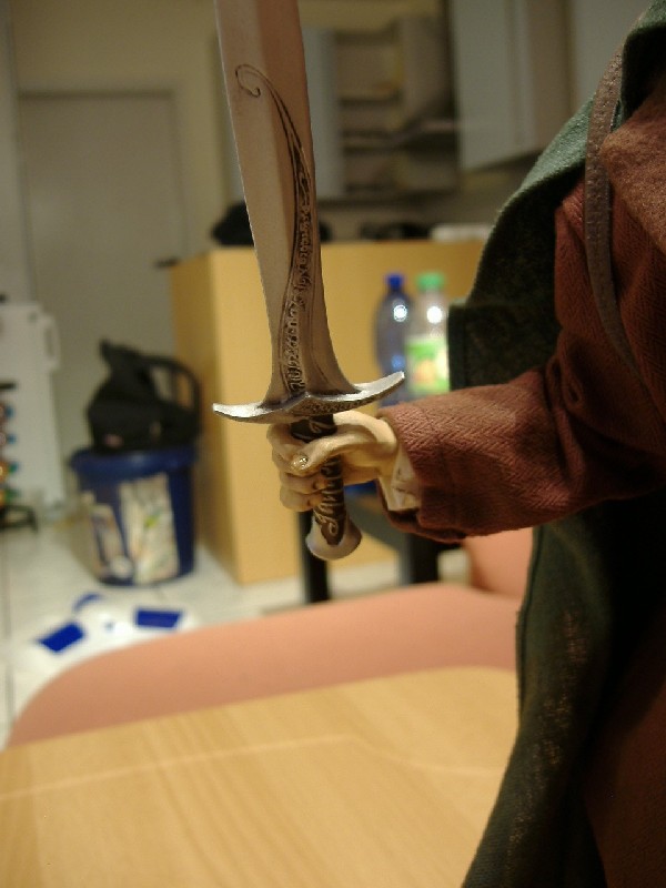 Das Schwert ist nicht sauber verarbeitet bei der Bemalung, aber ansonsten passt alles
