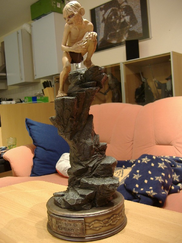 Diese PF ist wirklich der Hammer. Gollum und Smeagol sind hervorragend getroffen und der Paintjob ist klasse. Auch die Base mit dem Gestein sieht astrein aus und ist mächtig schwer. Dank der zweiten Base kann man beide Figuren gleichzeitig ausstellen. Der Smeagol streckt sich soweit nach oben, dass die 60cm gesprengt werden und er in ein normales Besta-Fach nicht mehr reinpasst