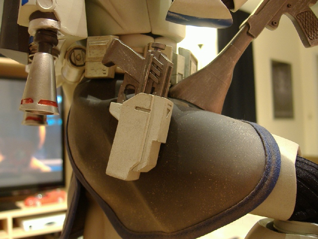 Detailaufnahmen Bewertung: 10 von 10 Punkten Wirklich sehr viele Details. Manchmal könnte die Bemalung etwas sauberer sein, aber insgesamt kann man hier sehr lange neue Kleinigkeiten entdecken. Der Mixed-Media-Anteil beschränkt sich auf sehr wenige Teile, aber was will man bei einem Klonkrieger auch erwarten? Der Granatengürtel als Exclusive-Zugabe wertet die PF in meinen Augen wirklich auf!