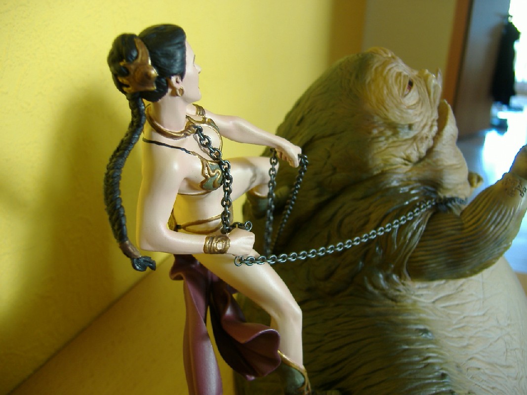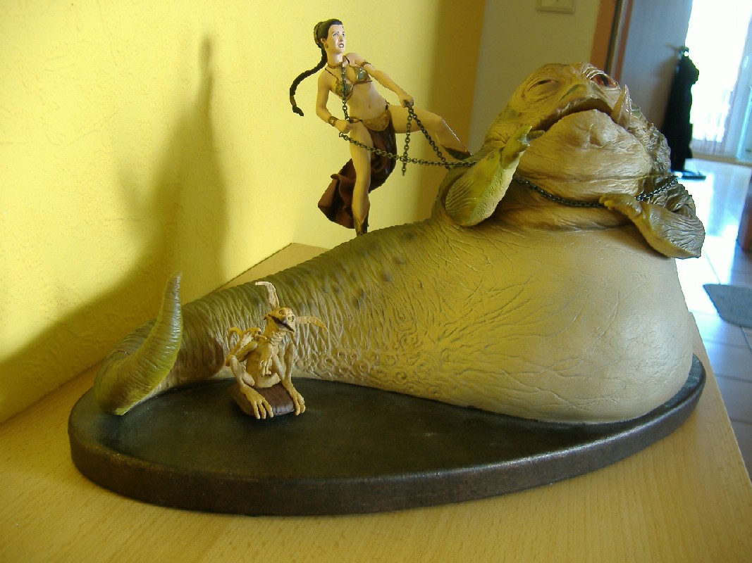 Ein tolles Diorma, dass Prinzessin Leia im Kampf mit Jabba dem Hutten zeigt, den sie in Episode 6 für sich entscheiden kann. Carrie Ann Fisher hätte besser getroffen werden können, aber bei dem kleinen Maßstab ist das zu verzeihen. Da die anderen Leia-Collectibles verkauft wurden, musste auch dieses Dio gehen, da es in keinem anderen Fach einen Platz gefunden hätte