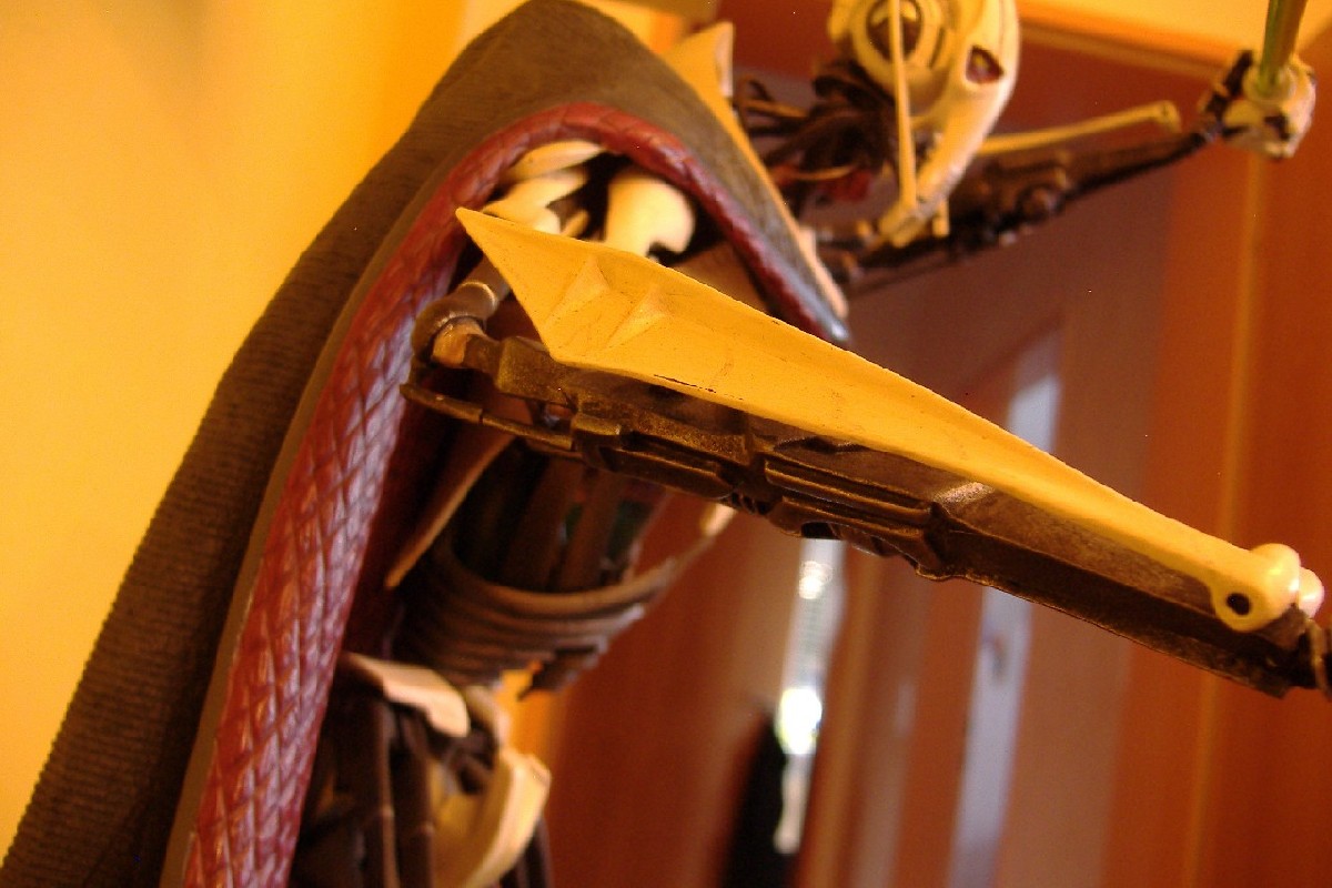 Man achte auf die Kampfspuren