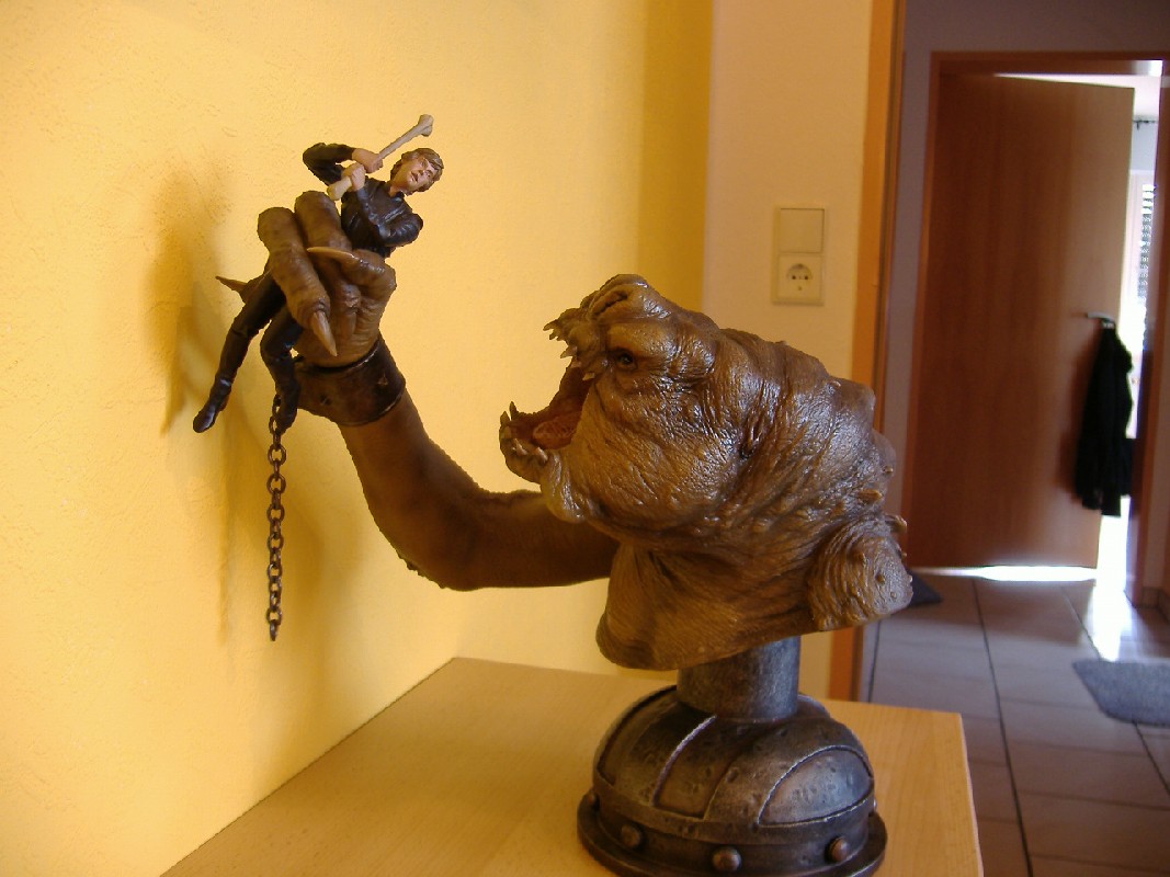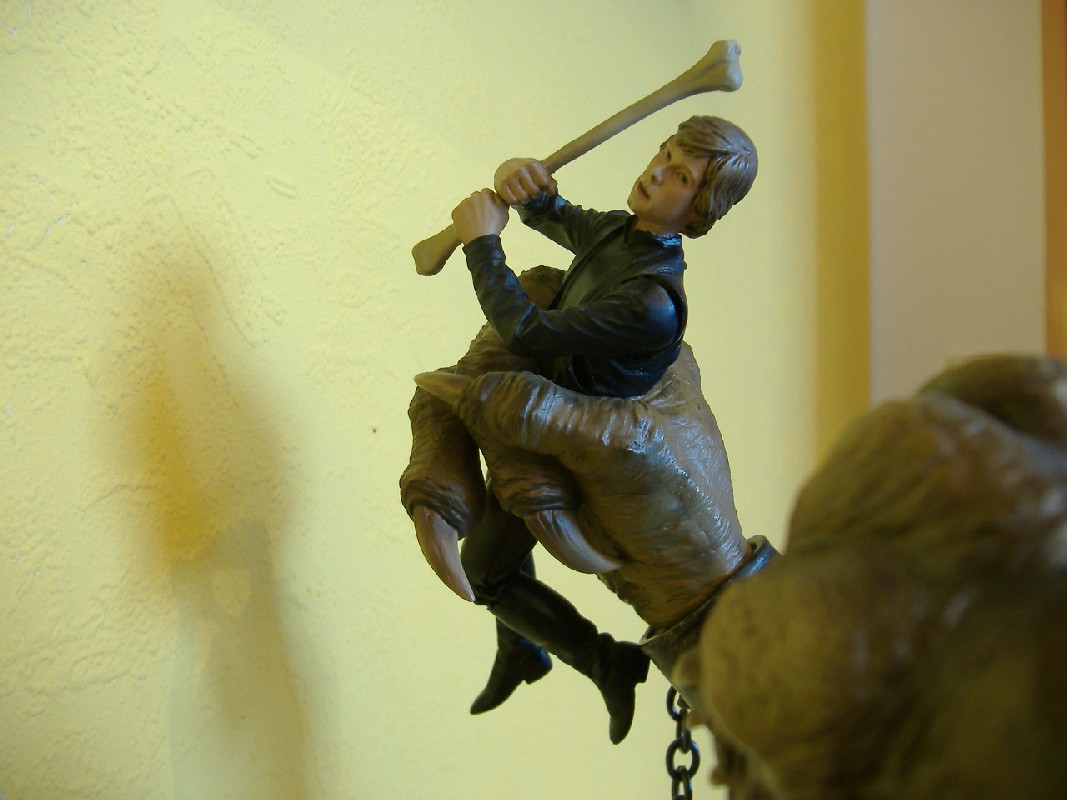 Dieses Diorama zeigt eine Szene des Kampfes zwischen dem riesigen Rancor und Luke Skywalker in Jabbas Palast, zu sehen in Episode 6. Der Rancor ist hässlich wie er sein soll und auch Luke ist gut getroffen, wenn man den Maßstab bedenkt. Musste die Sammlung leider verlassen, da ich einfach keinen passenden Platz dafür gefunden habe
