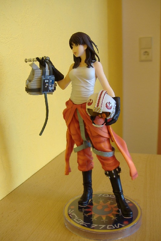 Diese Statue von Kotobukiya tanzte komplett aus der Reihe. Eigentlich sind die Anime-Statuen von Koto nicht mein Fall, aber die fand ich irgendwie niedlich und sie passte aufgrund der Uniform gut zur Mini-Büste von Luke und seinem X-Wing-Helm. Ist dann dem Platzmangel bei der Star-Wars-Wand zum Opfer gefallen