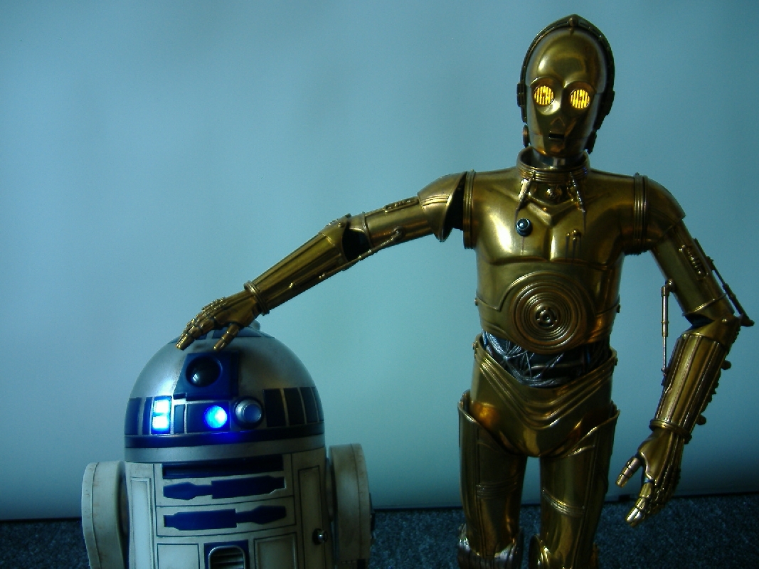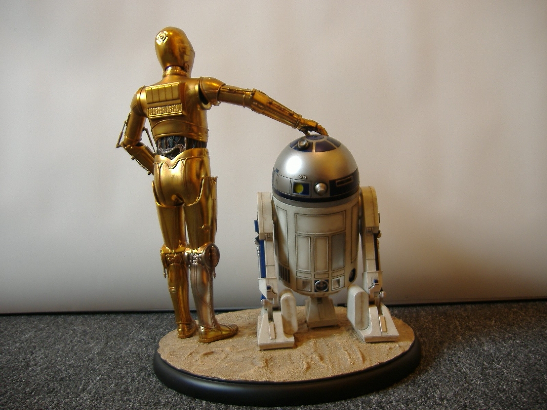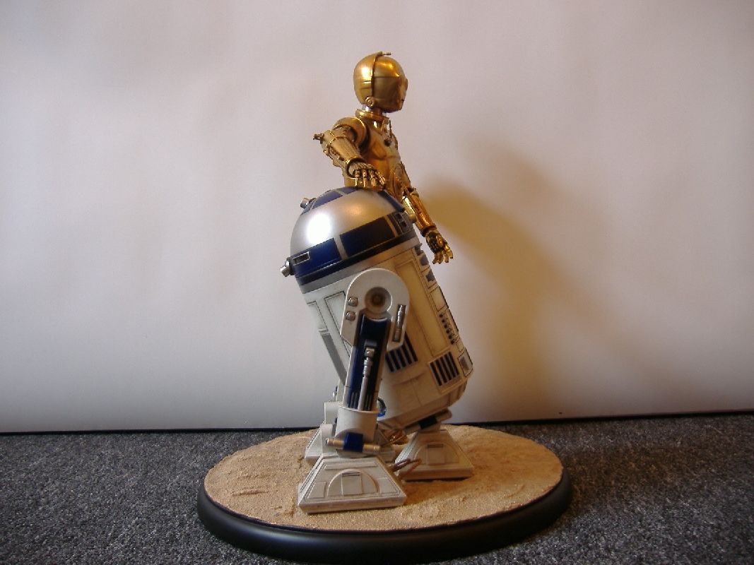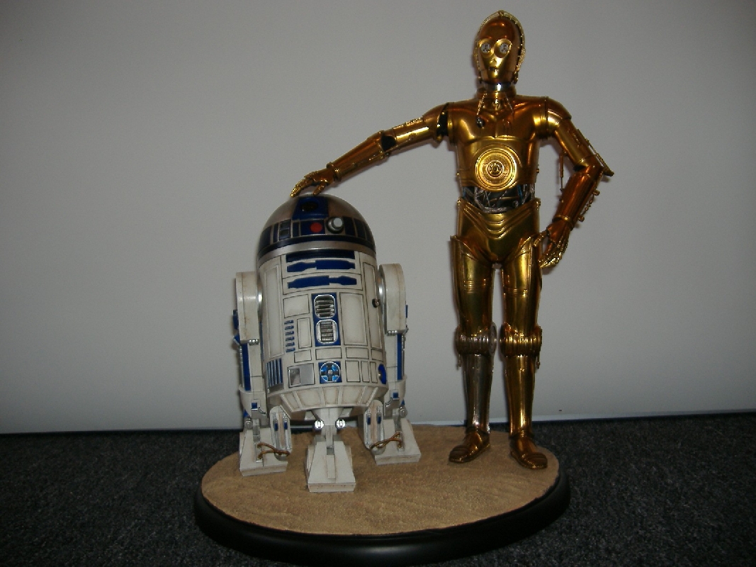 Der Gesamteindruck Bewertung: 10 von 10 Punkten Wenn man die beiden Droiden in der Vitrine stehen hat, dann sind alle vorherigen Diskussionen, ob das Material nicht eher billig wirkt, direkt vergessen. Sie sehen einfach klasse aus machen richtig was her, vor allem auch dann, wenn die Beleuchtung an ist. Aber auch so sind die Beiden einfach spitzenmäßig getroffen