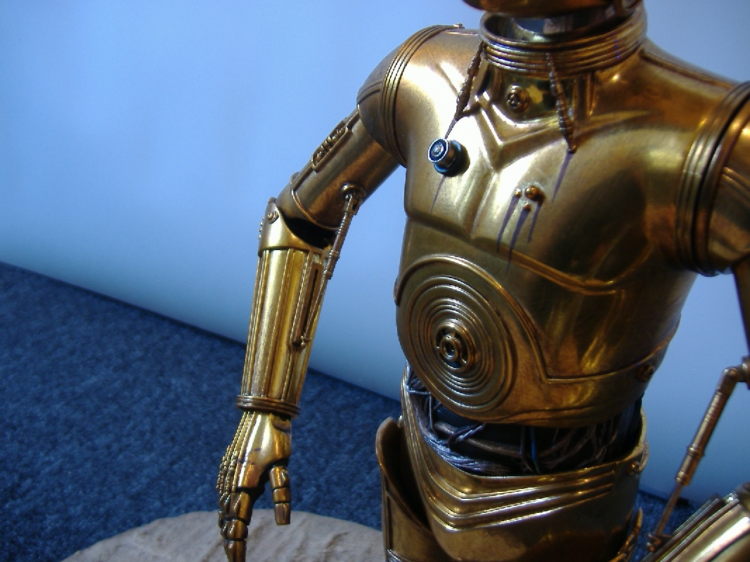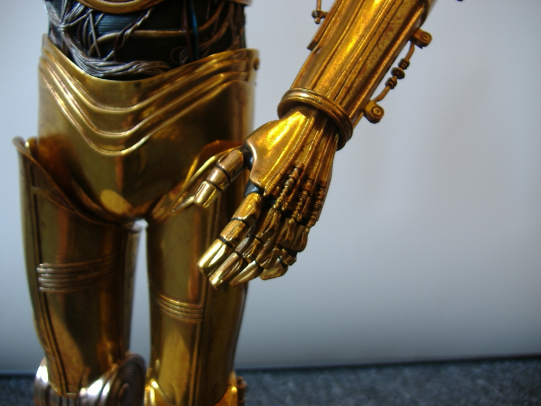 C-3PO Bewertung: 10 von 10 Punkten Mit einem Wort: Genial! Die Proportionen sind stimmig, die Details wie die ganzen Dämpfer sind super getroffen und funktionieren tadellos. Dank ihnen kann man die Arme in die gewünschte Position bringen, auch eine Seltenheit bei den PFs. Die Bemalung mit den Gebrauchsspuren ist auch super gelungen, volle Punktzahl