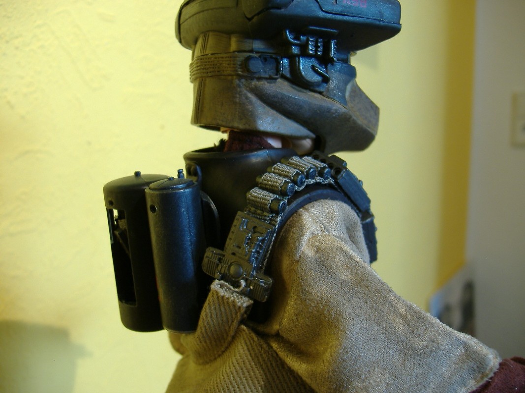 Diese Figur wollte ich für meinen Han Solo in Carbonite haben, weil ich beide zusammen beim Philip gesehen habe und mir das sehr gut gefallen hat. Damals war sie recht schwer zu finden, so dass ich in Hong Kong zuschlagen musste. Für ihr Alter sehen die Details sehr gut aus, wobei sie nur mit Helm präsentierbar ist, der Leia-Kopf sieht schon fast schlimm aus ;-) Da ich die Han-Präsentation nach 3 Jahren aufgelöst habe, durfte auch die Leia ein neues Zuhause finden