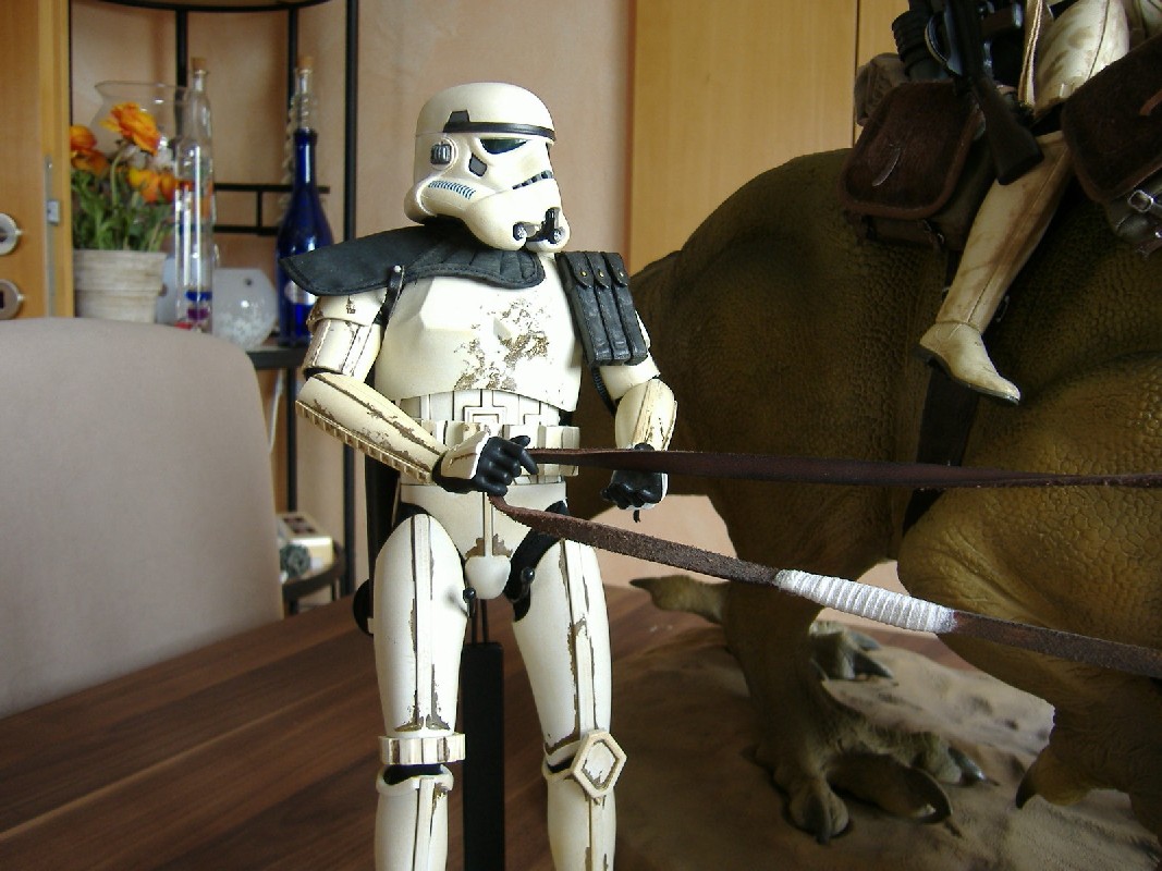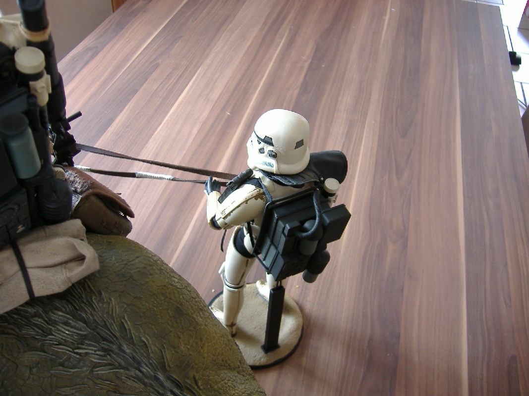 Nachdem ich schon den Dewback und den Sandtrooper Deluxe gekauft habe, musste noch ein 2. Trooper her, damit ich das Diorama erweitern konnte. Der Corporal verfügt über einen schwarzen Schulterschutz und natürlich noch eine ganze Menge weiterer Ausrästungsgegenstände