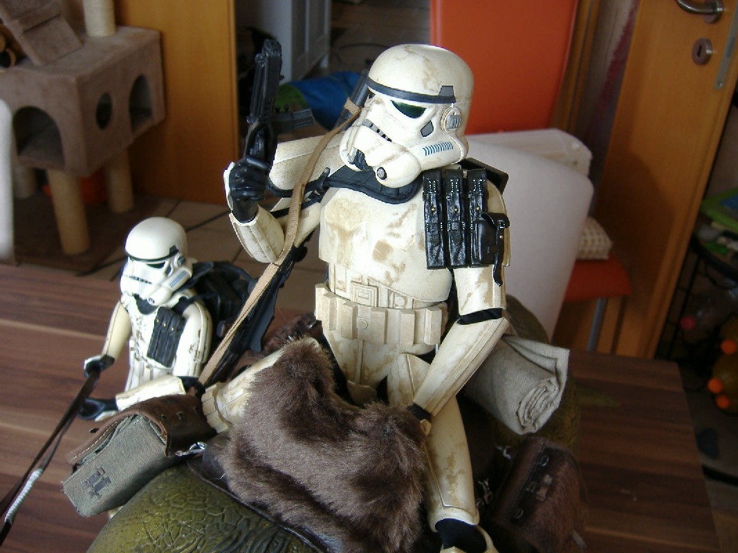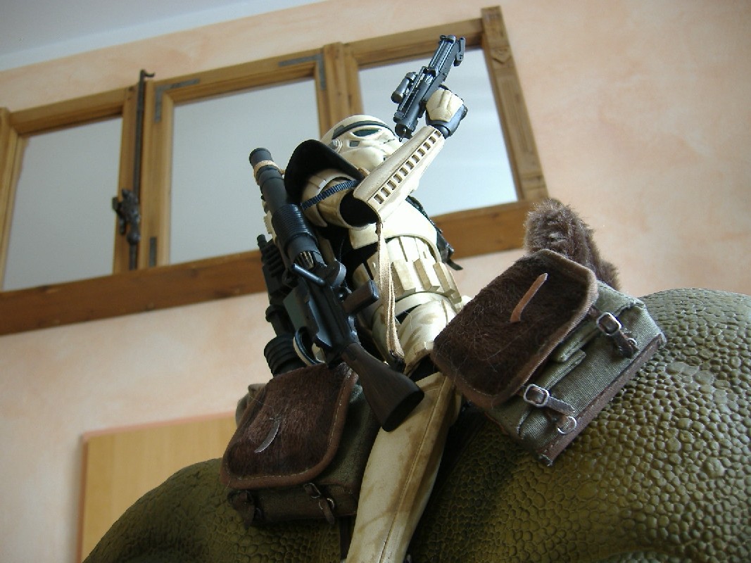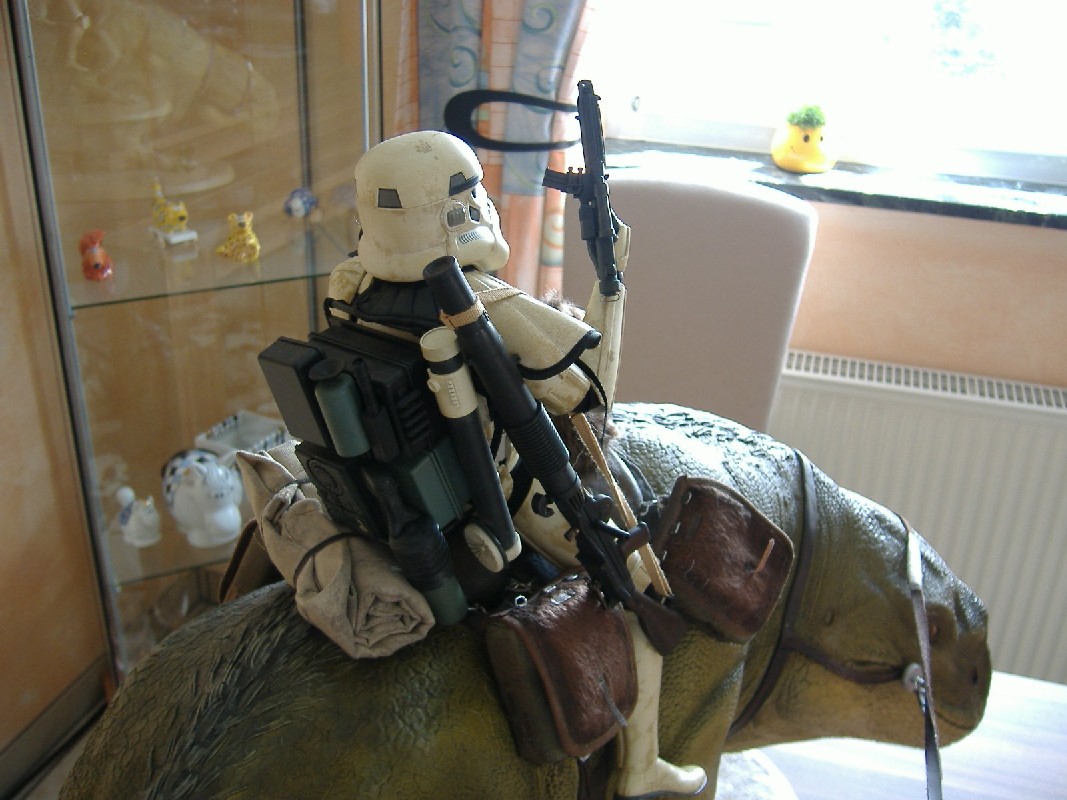 Dieser Sandtrooper kam passend zum Dewback heraus und da ich sowieso ein Diorama haben wollte, musste er her. Im Gegensatz zu den anderen Troopern hat er eine andere Base, ein anderes Gewehr, einen anderen Schulterschutz und noch diverse andere Ausrüstungsgegenstände