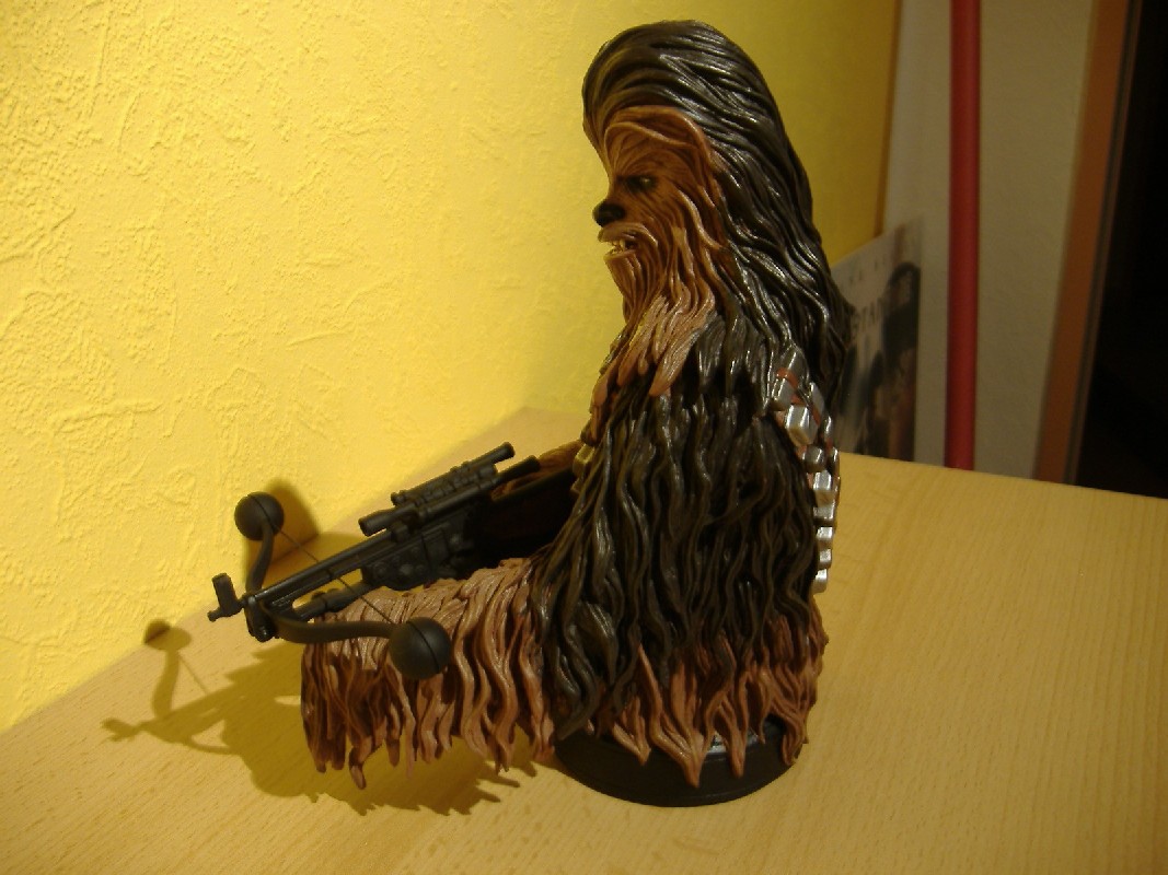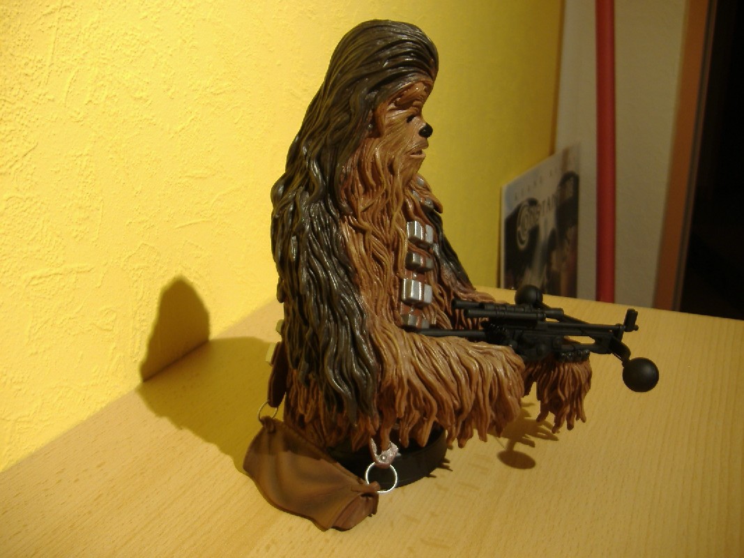 Diese Büste konnte ich zu einem tollen Preis zusammen mit der Han-Büste bekommen. Chewbacca ist sehr gut getroffen und auch die Details wie sein Bogen und seine Tasche überzeugen. Leider war das Fach mit beiden PFs und den Mini-Büsten zu voll, deswegen mussten die Büsten wieder gehen