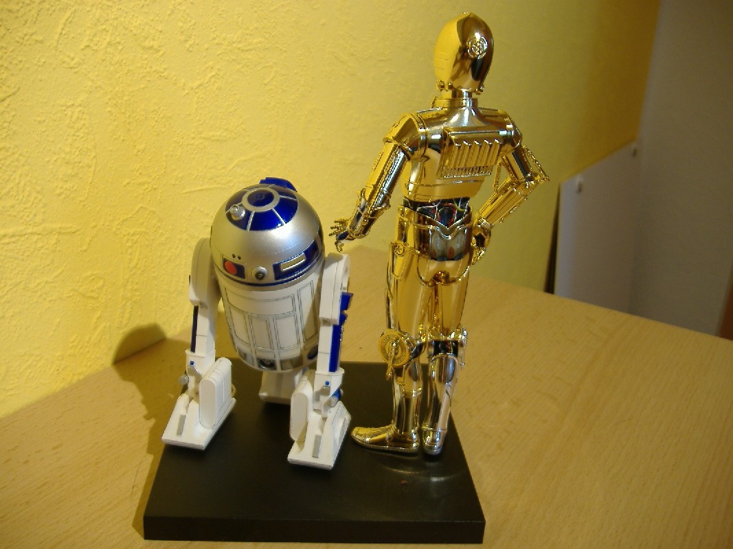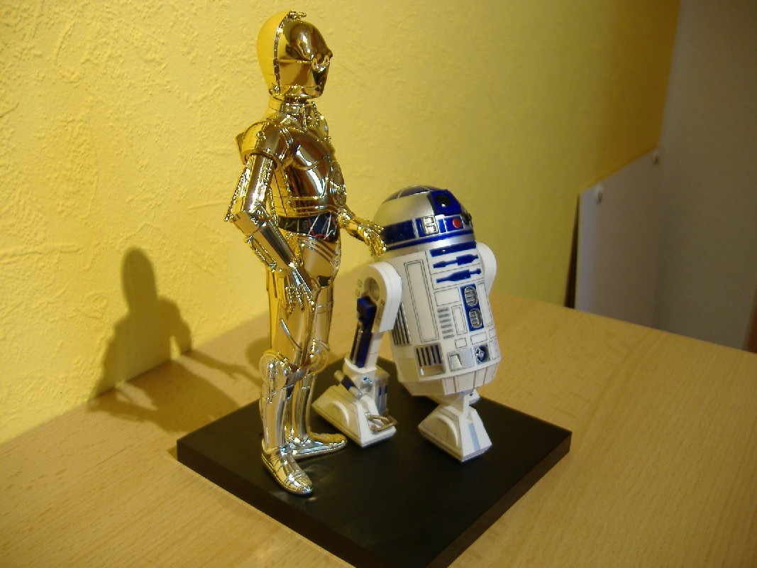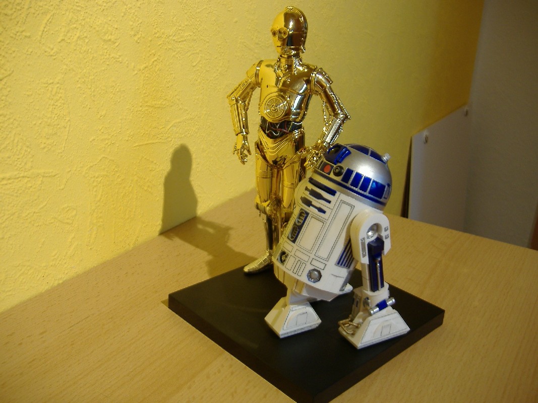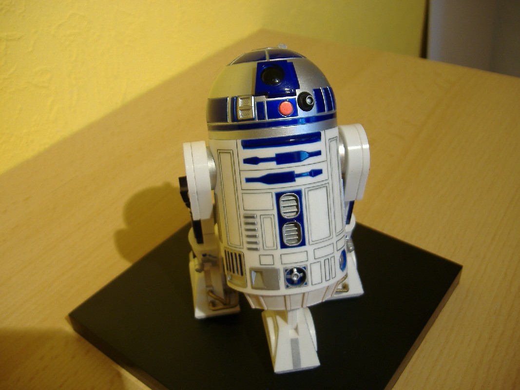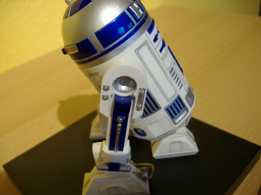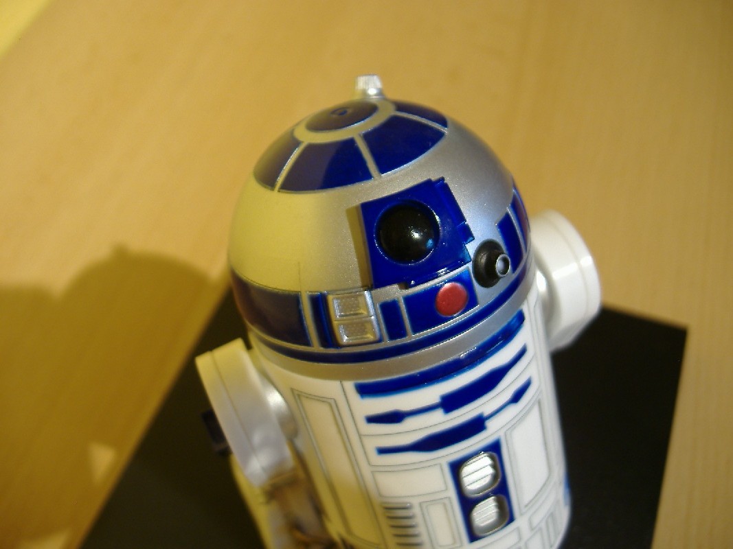 R2-D2 Bewertung: 6 von 10 Punkten Beim R2-D2 sieht man leider schon sehr deutlich, dass es sich hier um ein Plastik-Teil handelt. Ohne Gebrauchsspuren ist die Bemalung nicht sehr authentisch und die Details kommen nicht so gut zur Geltung, daher die eher schlechte Bewertung