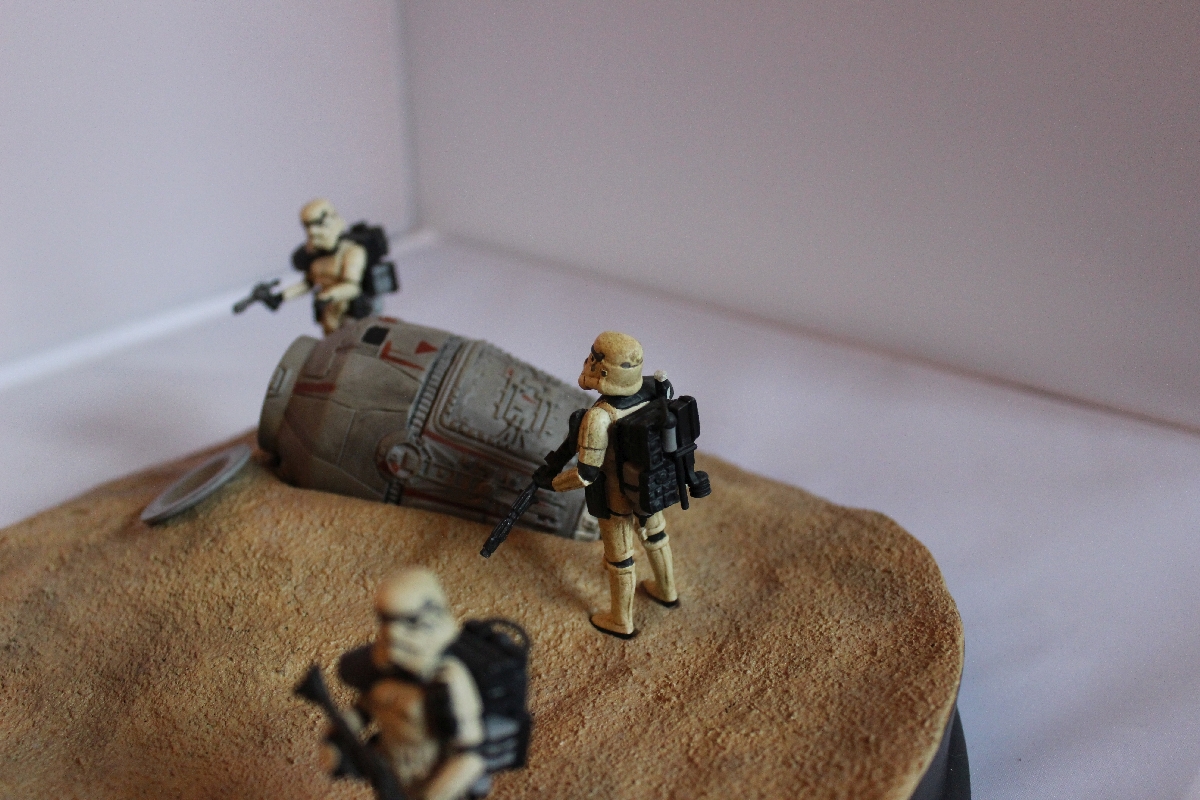 Detailaufnahmen Bewertung: 9 von 10 Punkten Bei der Bemalung sind natürlich Grenzen gesetzt wegen den sehr kleinen Sandtroopern. Aber die Farbgebung ist sehr realistisch und auch die Details wie die Fußspuren im Sand sind klasse